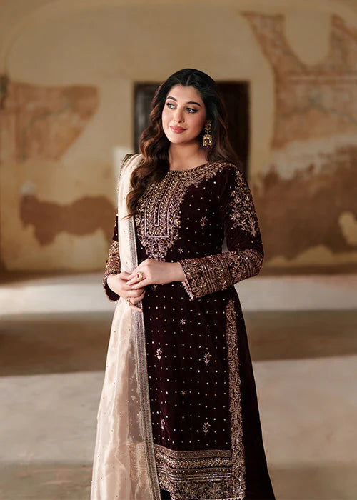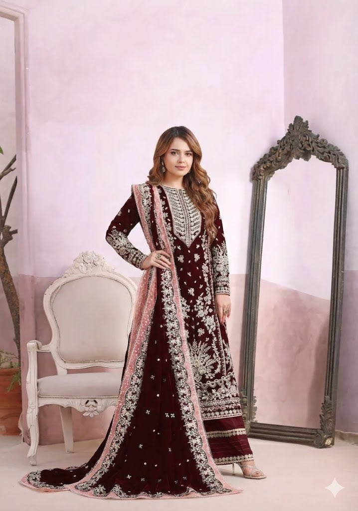 Aneela’s Maroon Velvet Party Wear (Unstitched)