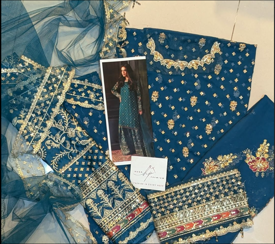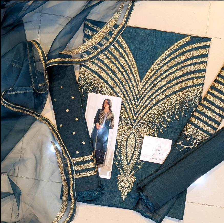 • Work: Thread, tilla, sequence & hand embellishment – intricately crafted for a refined festive appeal